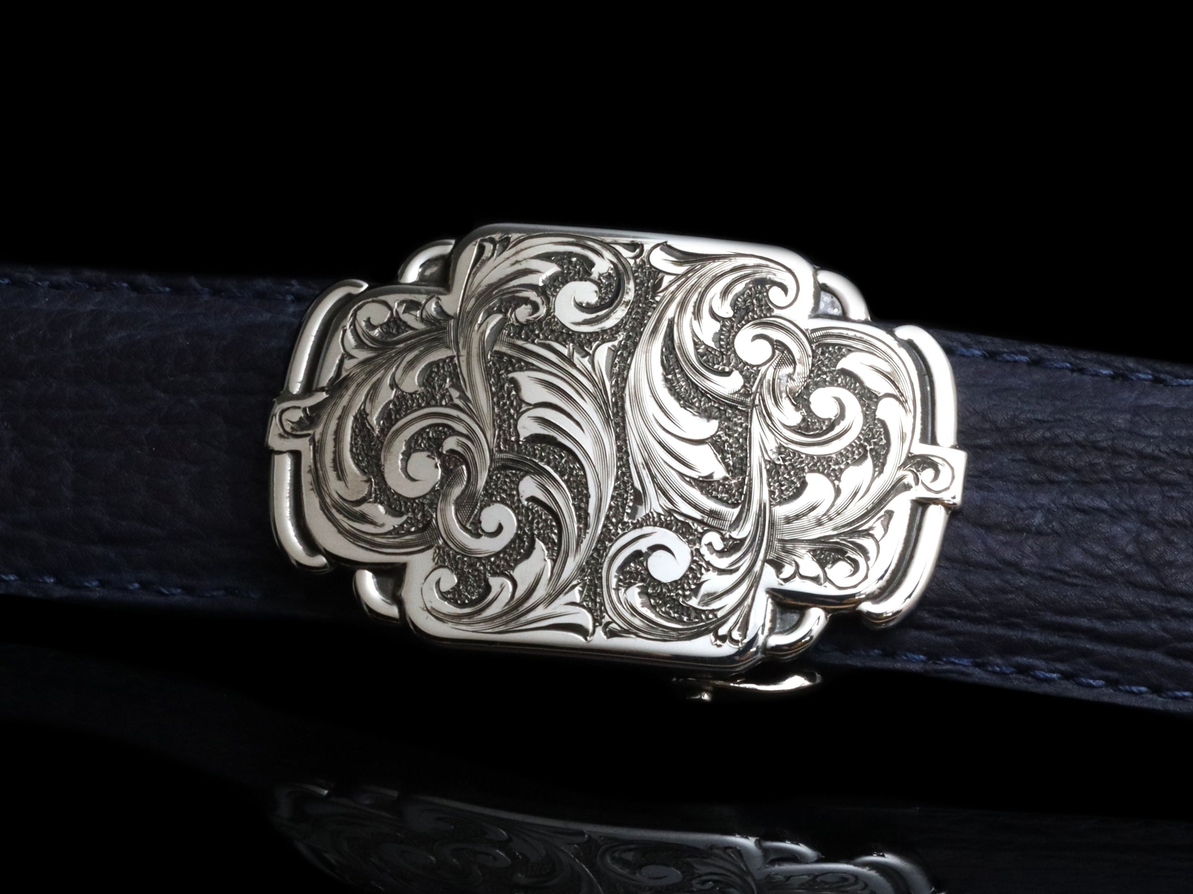 The Pendleton Austin Sterling Silver by Comstock Heritage is a fresh take on classic Deco influences. Crafted from Sterling silver, this buckle is framed with half-round Sterling wire accents that add dimension without overpowering the design. The center is finished with our signature Austin-style hand engraving, offering a clean, structured look that balances tradition with a modern edge.